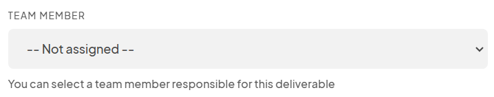 Use the Team Member dropdown to select the person responsible for completing the deliverable.
