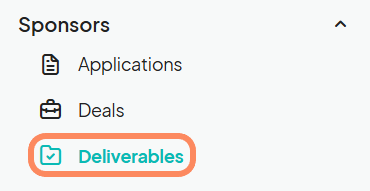 - On the left side-bar menu, click the "Sponsors" drop-down arrow and select "Deliverables."