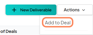 Click on the "Actions" button to display the drop-down menu. There is an option to add the checked deliverables to one or more sponsor deals.
