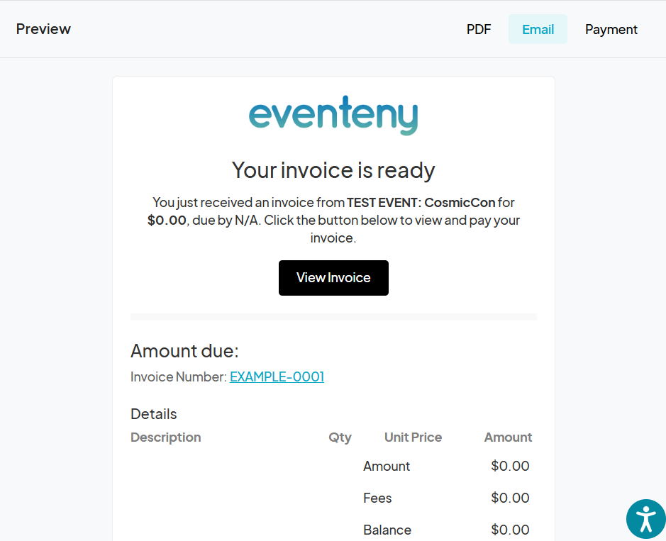 After reviewing the PDF version of the invoice, you can also preview how the invoice email will appear to the recipient before sending it.