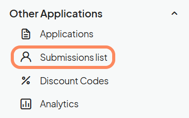 - On the left sidebar menu, click on "Submissions List" under the "Other Applications" drop-down menu.