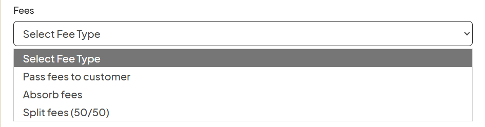 Then, use the Fees dropdown to decide who covers transaction fees:
