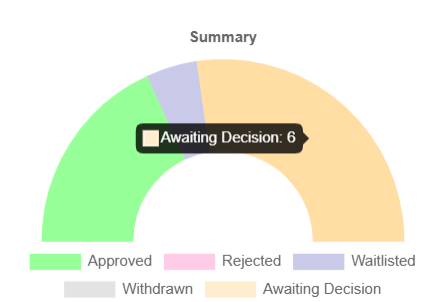 Status Breakdown: How many applicants are Approved, Rejected, Waitlisted, Withdrawn, or Awaiting Decision.