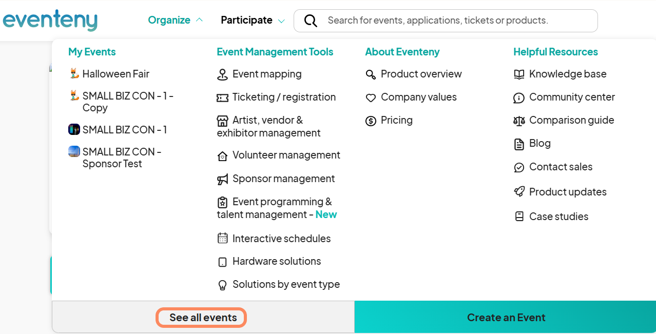 - You will be taken to your "My Events" page, which encompasses all of your event and company details. At the top right corner of the events section, click "Copy from Event" written in gray text.