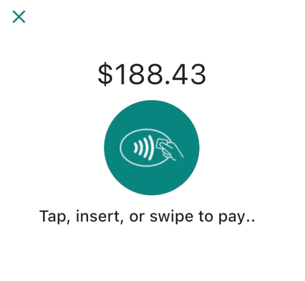 Next, the payment screen will appear displaying the total amount due. The customer can then complete the payment by tapping their contactless card or phone or inserting their chip card into the reader. The reader will process the payment automatically.