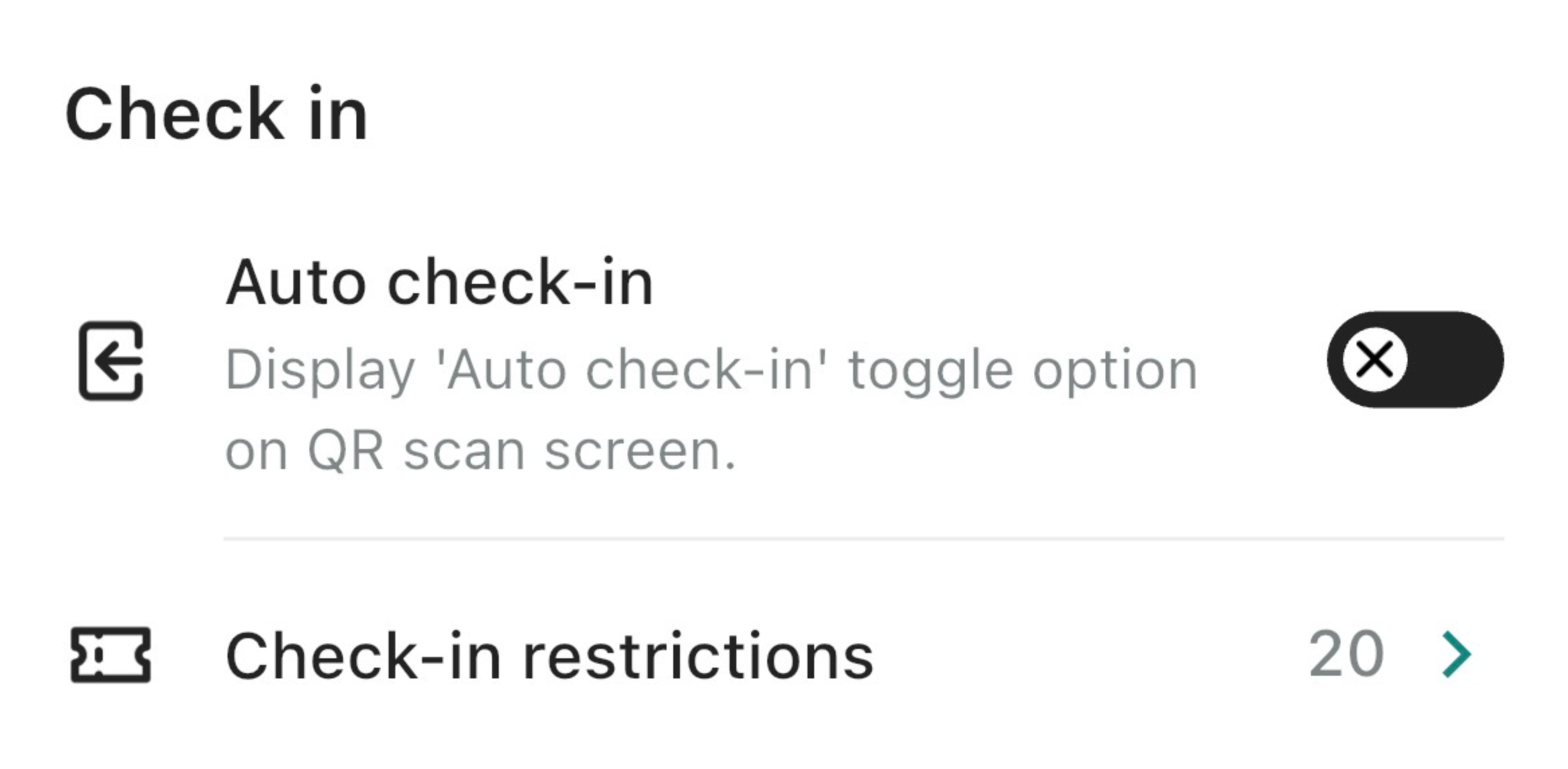 Auto Check-In: When enabled, tickets will automatically be checked in as soon as they are scanned. When disabled, you will need to manually confirm each check-in.