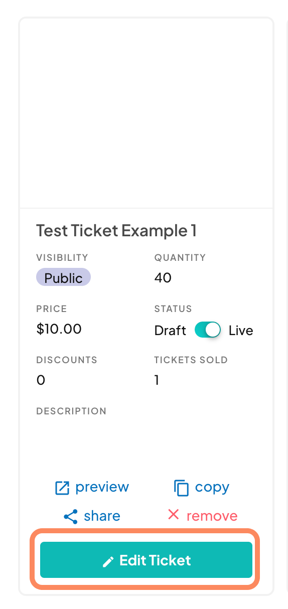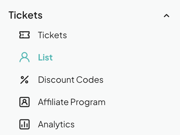 Go to your event dashboard. Select Tickets from the left-hand menu.