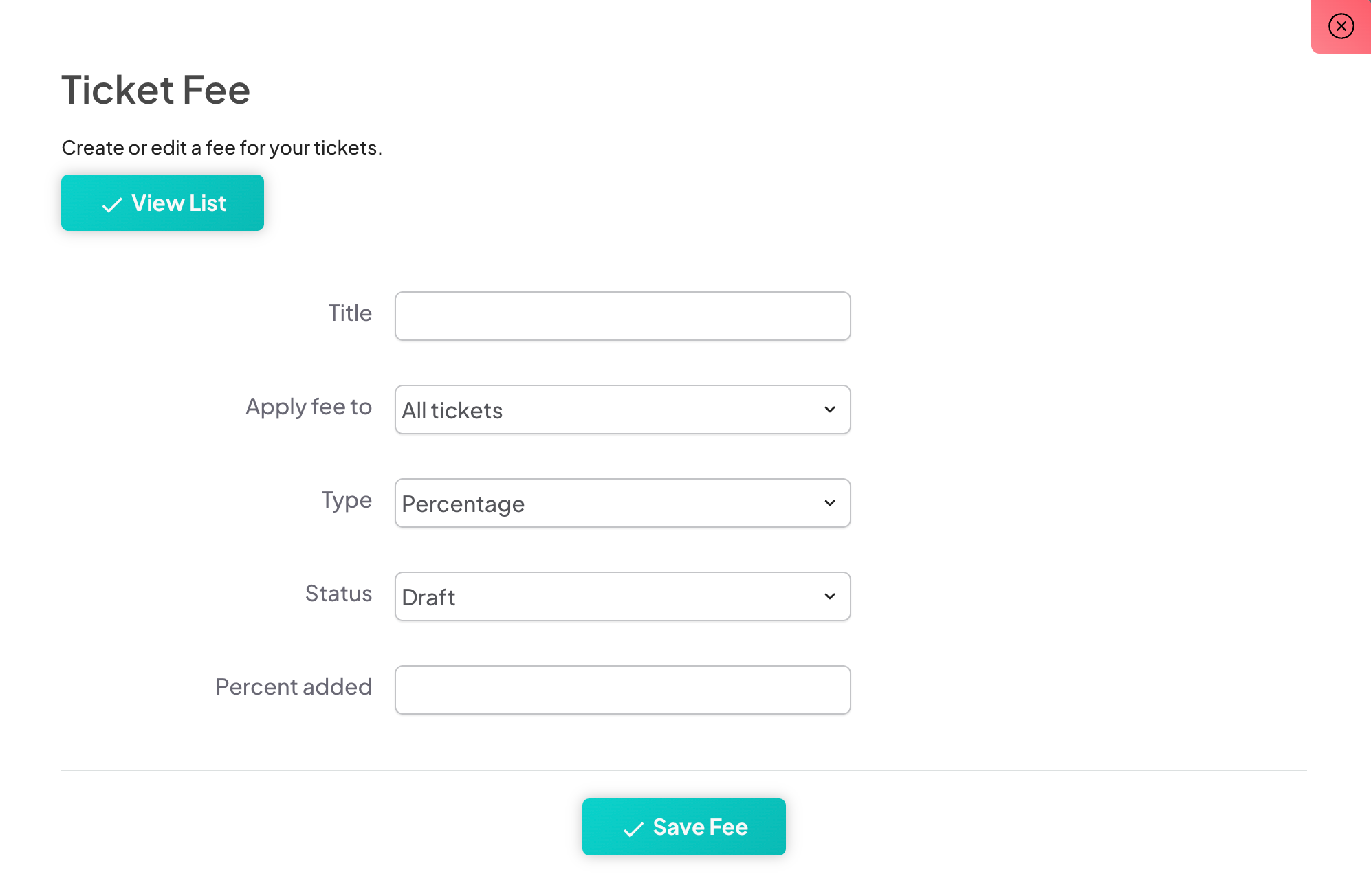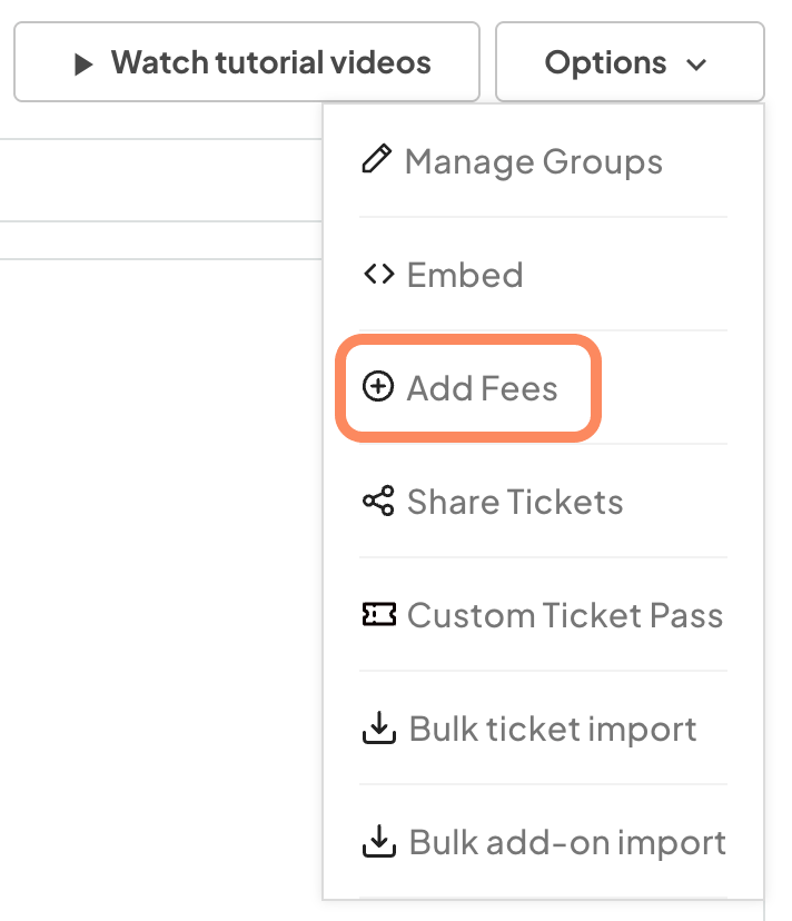 Custom fees allow you to add additional charges (such as parking, processing, or service fees) to your tickets.
