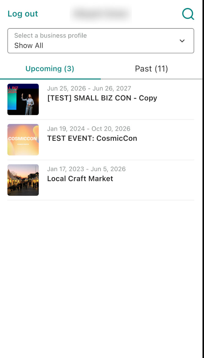 From the Events screen, select the event you want to manage.