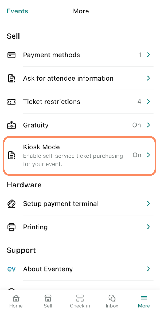 Kiosk Mode allows you to set up a device for self-service ticket purchases, enabling attendees to buy tickets directly from a tablet or device without staff assistance.