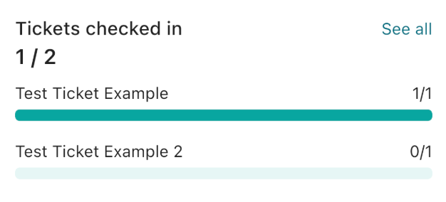 The See All button lets you view the full list of ticket types and their check-in statuses.