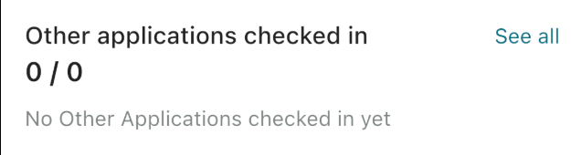The Other Applications Checked In section displays check-in data for any additional application types beyond tickets and vendors. If no other applications are set up, this section will show 0 out of 0. This helps you monitor attendance across all application types being used for your event.