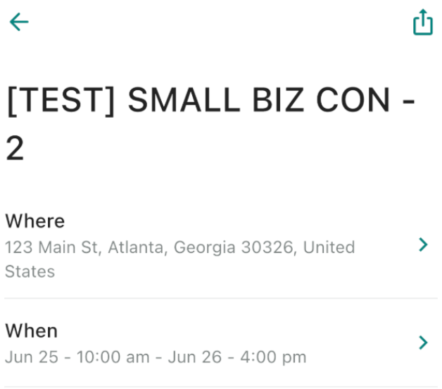 In the top right, the share icon allows you to easily share the event via text, email, or other apps.