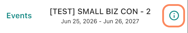 Tapping the information icon at the top right corner of the analytics page opens your event’s details page, where you can view the event name, location, and date/time.